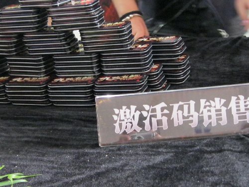 現(xiàn)場,網(wǎng)游愛好者,各家媒體,參展商云集一堂。為了吸引,更多游戲愛好者的眼球,各家參展商更是花樣百出。在一家展商周圍,聚集了眾多愛好者,出于湊熱鬧的心理,我也上前看了看,原來是現(xiàn)場銷售激活碼。這不看不知道在一回頭原來隊(duì)已經(jīng)拍的好長了。