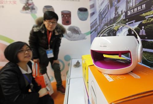 3月14日,第25屆中國(guó)北京國(guó)際禮品、贈(zèng)品及家庭用品展覽會(huì)在北京國(guó)際展覽中心開幕。這是觀眾在參觀太陽(yáng)能藍(lán)牙音箱。本屆展會(huì)為期4天,展出面積4萬平方米,吸引約1200家企業(yè)參展。展品包括工藝品、紀(jì)念收藏品、商務(wù)禮品、文化用品和家居用品等。