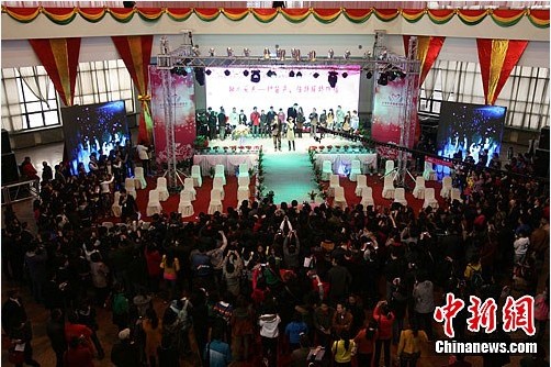 3月30日上午,中國·山西2012國際婚慶產業(yè)博覽會在山西太原展覽館內舉辦。本屆婚博會以“經(jīng)典、時尚、魅力、和諧”為主題,展現(xiàn)中國國內婚慶行業(yè)發(fā)展流行趨勢。期間還將舉辦妝容才藝大賽、花藝大賽及萬人相親大賽等。涉及婚慶服務、新婚家居、珠寶首飾、美容化妝、婚宴酒店、婚禮購車、新婚購房等諸多門類。(來源:中新網(wǎng))