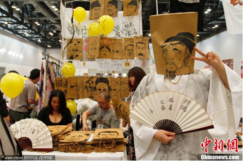 2012年04月15日,北京,第七屆囧囧有神同人動(dòng)漫展在國家會(huì)議中心舉行。眾多動(dòng)漫愛好者齊聚國家會(huì)議中心,參與COSPLAY、原創(chuàng)動(dòng)漫發(fā)售、“偽娘”大賽等展會(huì)活動(dòng)。“杜甫很忙”系列漫畫日前在網(wǎng)絡(luò)上受到了廣泛的關(guān)注,動(dòng)漫愛好者也“與時(shí)俱進(jìn)”地推出了“杜甫很忙”主題紙袋頭套,吸引了許多年輕動(dòng)漫愛好者的喜愛。(來源:中新網(wǎng))