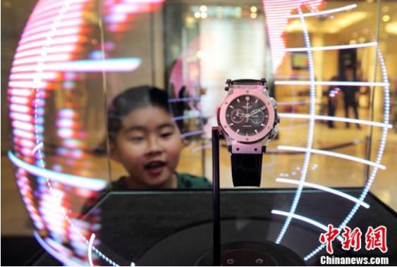 5月7日,用激光投影展示的手表吸引了觀眾的目光。當(dāng)天,以“融合的藝術(shù)”為主題的“宇舶攜手法拉利中國20周年”全國巡展首站在南京德基廣場舉行,與市民共同分享全球知名奢侈品宇舶表中蘊(yùn)含的傳統(tǒng)腕表技藝與現(xiàn)代高科技融合之深意。(來源:中新網(wǎng))