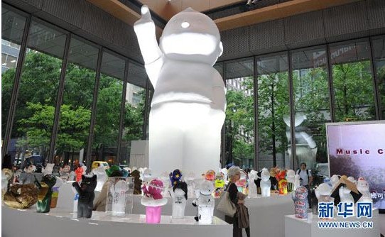 5月15日,日本東京,觀眾觀看香港、日本創(chuàng)意家以“天天向上”為主題的創(chuàng)意雕塑作品。當(dāng)天,為慶祝中國香港特別行政區(qū)成立15周年,由香港特別行政區(qū)東京經(jīng)濟(jì)貿(mào)易代表部主辦的“天天向上”創(chuàng)意雕塑展在東京舉行。展覽以香港藝術(shù)家榮念曾創(chuàng)作的5米高“天天向上”創(chuàng)意毛坯雕塑為主題,并展示了來自中國香港和日本的藝術(shù)家在毛坯雕塑上繪制的不同表情和服飾的130件作品。(來源:新華網(wǎng))