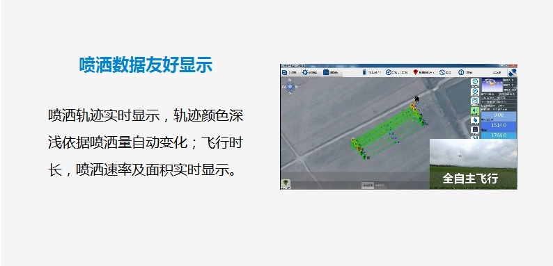 諸如:多邊形航線智能噴灑和智慧縮放、大田塊AB點智能踩點及作業(yè)實施、斷點續(xù)噴及多模式仿地飛行和避障、實時作業(yè)記錄\備份和遠程回放、仿真模擬飛行和PHM預警及診斷服務……