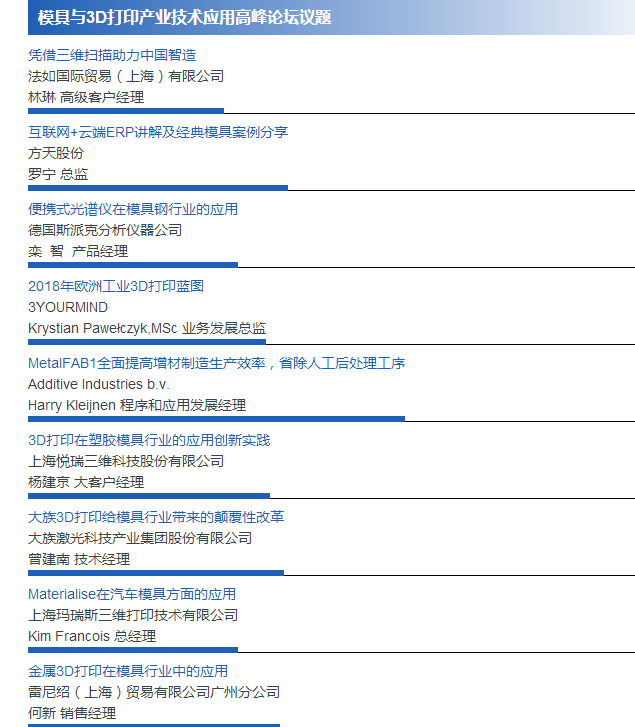 3D打印高峰論壇,由行業(yè)領(lǐng)先企業(yè)和研究機(jī)構(gòu)主講,揭示增材制造行業(yè)的應(yīng)用、發(fā)展產(chǎn)品和研究成果。不同題目匯聚環(huán)球行業(yè)智慧,擴(kuò)闊業(yè)者眼界,豐富與會者的參觀體驗。論壇題目排題搶先看: