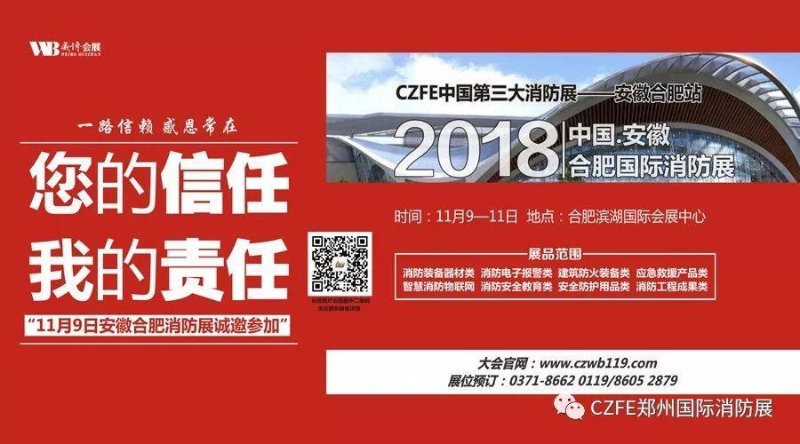由威博會展|CZFE鄭州國際消防展組委會打造的2018安徽(合肥)國際消防展,將于11月9日-11日在合肥濱湖國際會展中心盛大召開,展覽面積10000平米,展位設(shè)立500個,參展企業(yè)230家(中部消防科技產(chǎn)品采購盛會)!
