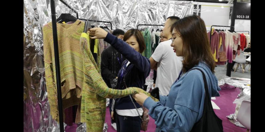 中國女裝領(lǐng)軍企業(yè)歌力思時尚集團供應(yīng)鏈負責人到訪針織力量展位,并驚喜地發(fā)現(xiàn)數(shù)家具有合作潛力的毛衫企業(yè)?。ǜ较聢D)