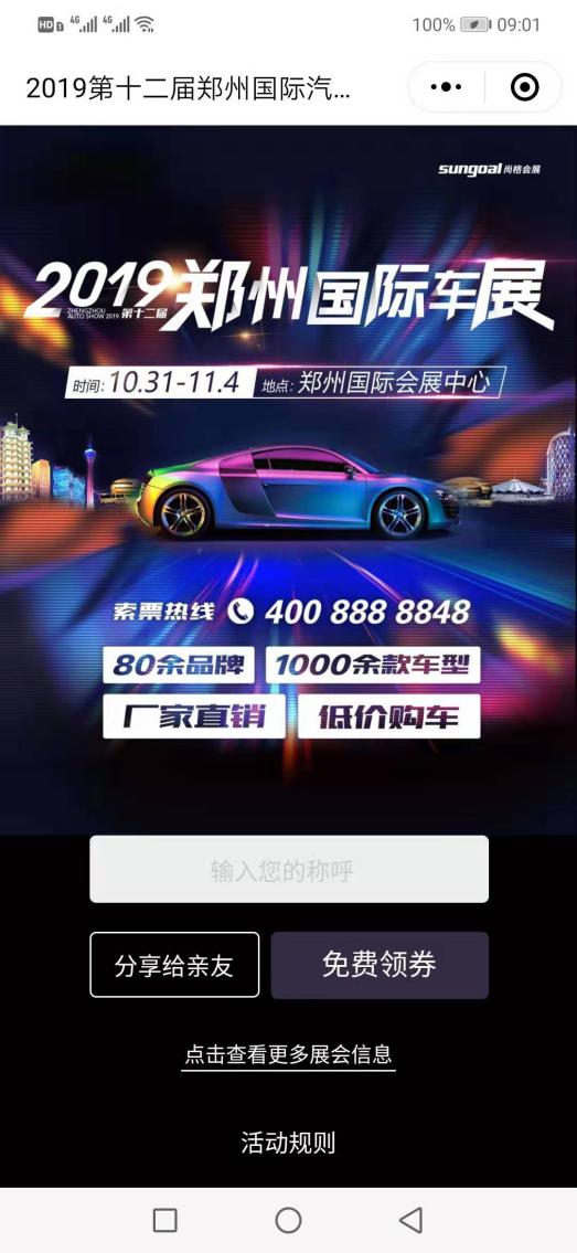 福利來了,2019鄭州國際車展門票免費(fèi)開搶啦!