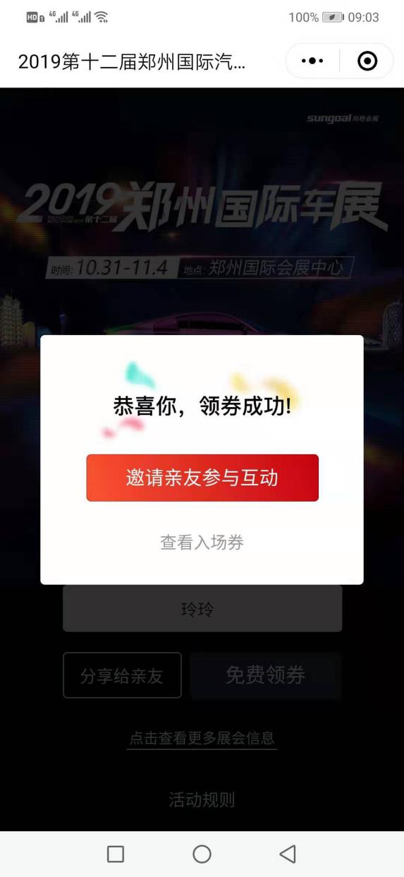 █ 入場前可以進(jìn)入官方微信【鄭州國際車展】點(diǎn)擊菜單【票證查詢】進(jìn)入查詢頁面打開電子票圖片。