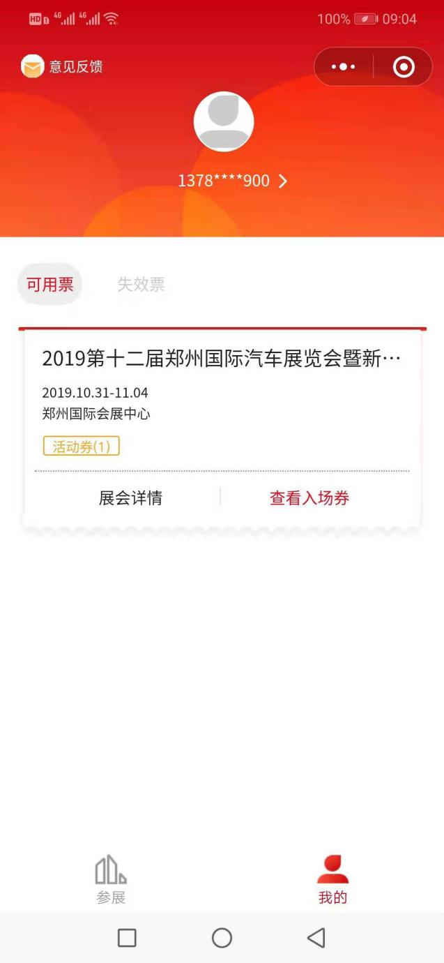 2、輸入手機(jī)號(hào)和驗(yàn)證碼點(diǎn)擊登錄,即可領(lǐng)取到免費(fèi)的鄭州國際車展門票;點(diǎn)擊“查看入場券”,即為車展電子門票,展期掃碼入場即可。