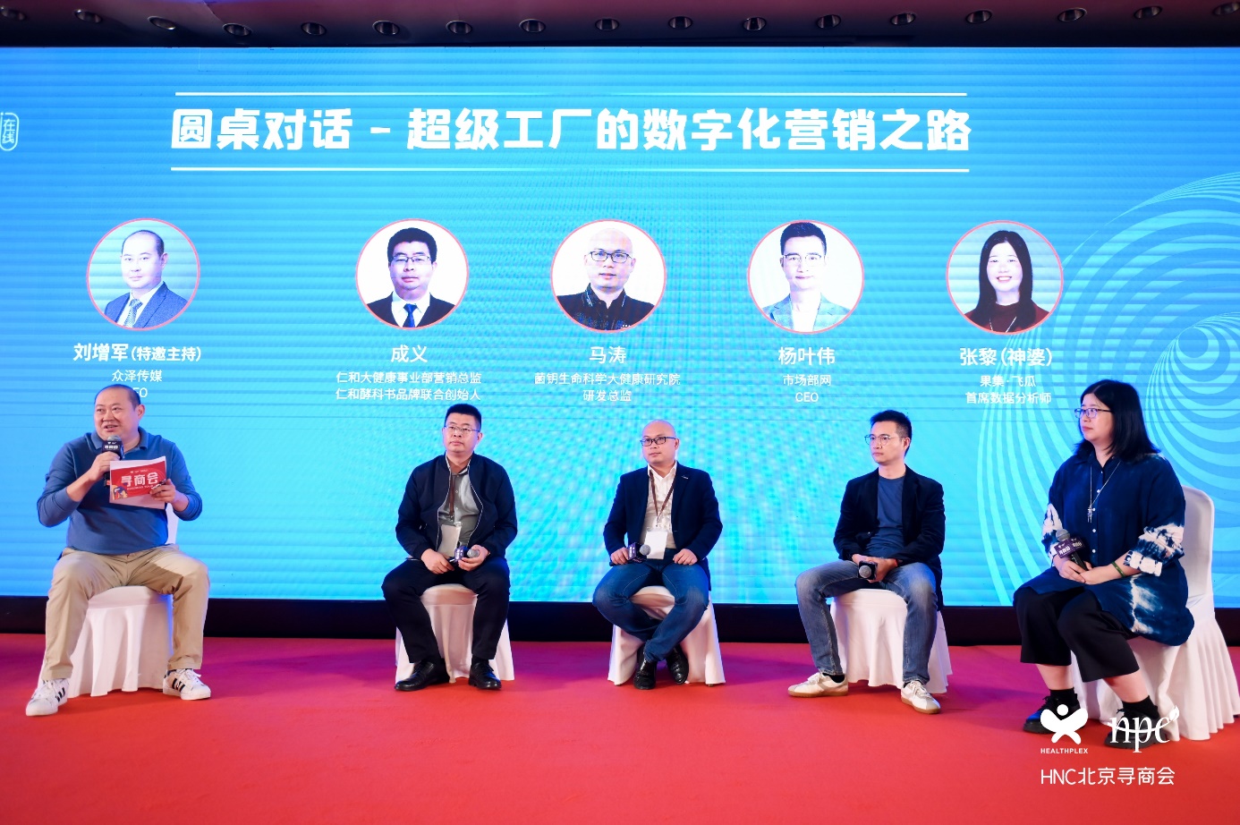 從左至右:眾澤傳媒CEO劉增軍(主持)、仁和大健康事業(yè)部營(yíng)銷總監(jiān) 、仁和酵科書品牌聯(lián)合創(chuàng)始人成義、菌鑰生命科學(xué)大健康研究院研發(fā)總監(jiān)馬濤、市場(chǎng)部網(wǎng)CEO楊葉偉、果集•飛瓜首席數(shù)據(jù)分析師 神婆