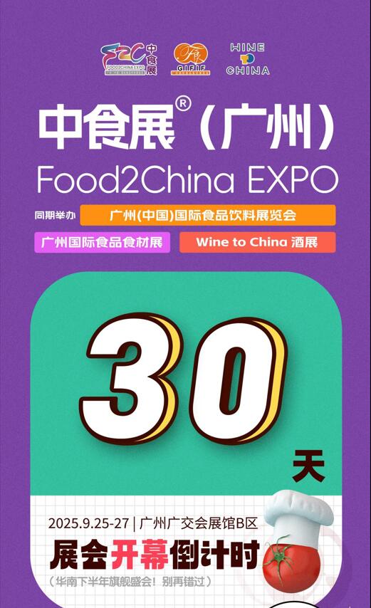 2025 F2C中食展®(廣州)暨廣州國際食品食材展、Food2China Expo、Wine to China酒展,將于2025年9月25-27日在廣州廣交會展館B區(qū)舉辦。展會由商業(yè)發(fā)展中心、中國國際商會廣州商會、廣東省進口食品協(xié)會、星域世展展覽(廣州)有限公司等權威機構主辦,預計吸引全球40多個國家和地區(qū)的1,000家展商參展。