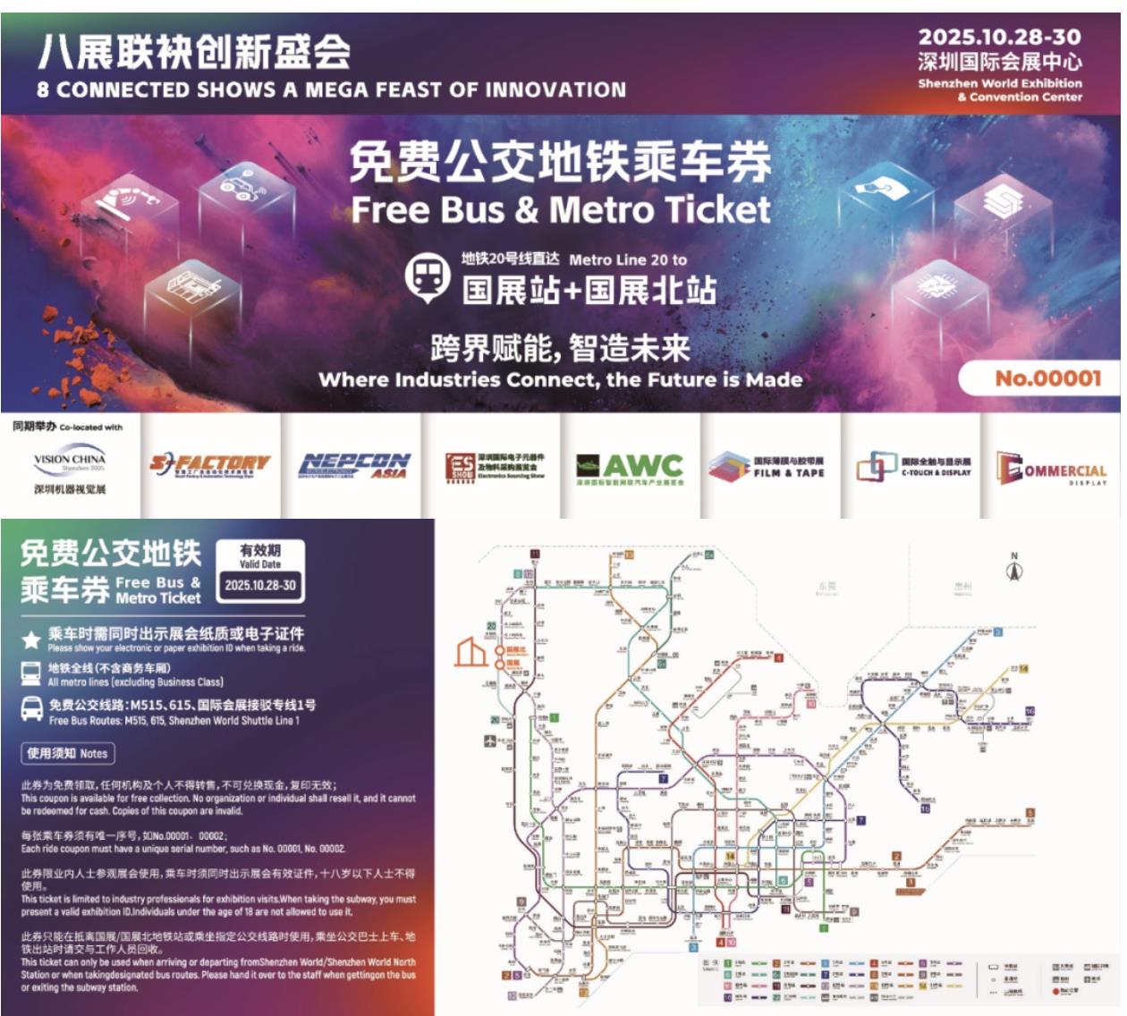 主辦方在開(kāi)展期間特別為前來(lái)展會(huì)的參展商和觀眾提供免費(fèi)公交地鐵乘車(chē)券,憑您的“2025亞洲工業(yè)科技展 ”任一展會(huì)的展商證或參觀證領(lǐng)取,每人每天限領(lǐng)2張,當(dāng)日領(lǐng)完為止。