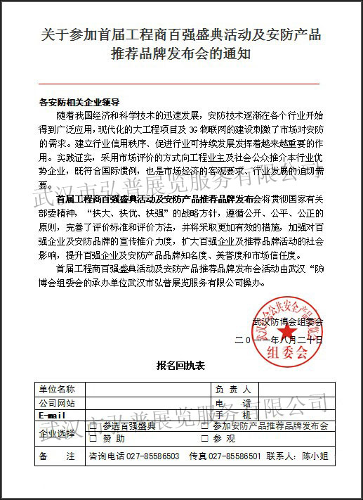 - 關(guān)于參加首屆工程商百強(qiáng)盛典活動及安防產(chǎn)品推薦品牌發(fā)布會的通知