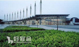 作為天津的重點建設(shè)項目,經(jīng)過近兩年的建設(shè)順利投入使用。由美國Lee Harris Pomeroy進行方案設(shè)計,造型寓意為中國傳統(tǒng)手工藝品—錦扇。用地面積169000m2,建筑面積61000 m2,前廣場9440 m2,后貨場11360 m2,停車場面積13000 m2,展館一層由A- F六個功能區(qū)組成,大展廳高度為15m-26m,提供868個展位,面積達18100平方米,后部綜合樓高度為8m,提供256個展位,面積達 5600 m2,展廳特點可分可合,可大可小,其空間組合十分靈活,適應(yīng)多種不同規(guī)模、性質(zhì)的展覽,可滿足專項展覽、會議、商務(wù)、宴會的多功能需要。
