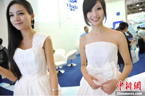 2012年4月18日,廈門市國際會展中心展廳里,一場紙業(yè)展覽會舉行,吸引眾多紙業(yè)商家參展。模特穿著用衛(wèi)生紙做成婚紗禮服,展示紙巾產(chǎn)品。(來源:中新網(wǎng))