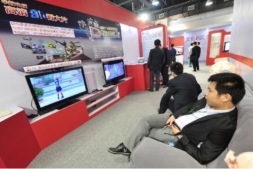 4月19日,參觀者在第六屆中國(guó)杭州電子信息博覽會(huì)上對(duì)比3D高清電視節(jié)目與普通電視節(jié)目的視覺(jué)效果。當(dāng)日,為期4天的第六屆中國(guó)杭州電子信息博覽會(huì)暨第六屆杭州國(guó)際社會(huì)公共安全產(chǎn)業(yè)博覽會(huì)在杭州和平國(guó)際會(huì)展中心開(kāi)幕。本屆杭州電博會(huì)以“智慧、融合、創(chuàng)新”為主題,共設(shè)展位近千個(gè),展覽面積達(dá)2萬(wàn)平方米,結(jié)合杭州和臺(tái)灣電子信息產(chǎn)業(yè)的優(yōu)勢(shì),重點(diǎn)展出智慧城市、云計(jì)算、物聯(lián)網(wǎng)、信息安全、移動(dòng)商務(wù)、移動(dòng)教育、數(shù)字家庭等方面的最新技術(shù)和產(chǎn)品。