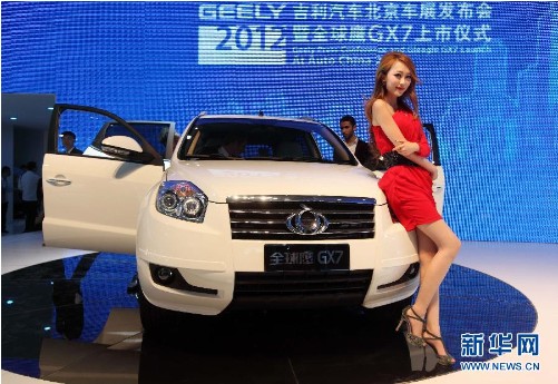 4月23日,北京國際汽車展覽媒體接待日上,吉利新款SUV全球鷹GX7首發(fā)。當(dāng)日,2012(第十二屆)北京國際汽車展覽會在北京中國國際展覽中心拉開帷幕,來自德國、法國、美國、日本、中國等14個國家和地區(qū)的2000余家廠商參展,本屆北京車展共展出車輛1125臺,其中全球首發(fā)車120臺。國產(chǎn)自有品牌汽車新能源電動車和新款首發(fā)車競相亮相。(來源:新華網(wǎng))