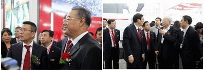 (左圖:中國機械工業(yè)聯合會會長王瑞祥觀看昆機展品。右圖:原機械工業(yè)部副部長陸燕蓀了解昆機產品性能。)