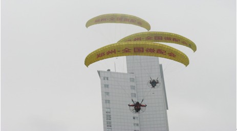 7月27-29全國微配會(huì),鄭州全國會(huì)宣傳現(xiàn)場!6架動(dòng)力傘,12個(gè)卡通人,12個(gè)宣傳牌,2個(gè)條幅,30萬份宣傳餐巾紙。宣傳人員60人!規(guī)模大,效率高!別出心裁的宣傳也得到了很多客戶的認(rèn)可;此次展會(huì)將會(huì)取得圓滿成功!