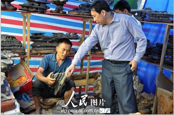 2012年5月6日,由中國文聯(lián)、中國觀賞石協(xié)會與安徽省人民政府共同主辦的首屆中國靈璧國際奇石博覽會在安徽省靈璧縣開幕。此間,共設(shè)置奇石展銷點(diǎn)6個,展銷攤位1000個。八方石客云集于此,奇石是五顏六色、奇形怪狀,石客是各懷心儀,或漫天要價,或闊斧砍價,但個個喜形于色。(來源:人民網(wǎng)-節(jié)慶會展頻道)