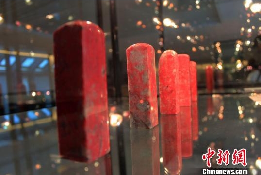 5月17日,來自陜西旬陽的百余件雞血石作品在西安展出。據(jù)考證,雞血石的開采始于明代,而盛名于清代,且多用于印章及工藝雕刻品的制作。陜西旬陽縣發(fā)現(xiàn)的雞血石礦是現(xiàn)今中國(guó)最大的雞血石產(chǎn)地,被譽(yù)為中國(guó)的“汞都”。目前,中國(guó)大陸對(duì)雞血石的收藏投資熱情也逐年升溫。(來源:中新網(wǎng))