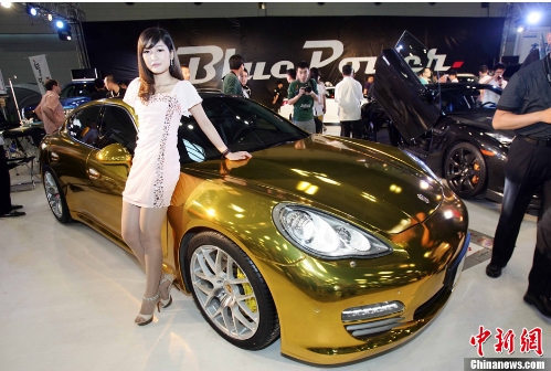 5月17日至20日“2012中國太原國際汽車展覽會”在山西太原會展中心召開,來自世界各地汽車廠商紛紛匯集于此。其中不乏世界著名品牌如阿斯頓馬丁、保時(shí)捷、奔馳、寶馬等。“黃金版”保時(shí)捷以其新穎的外觀,吸引了大量市民。(來源:中新網(wǎng))