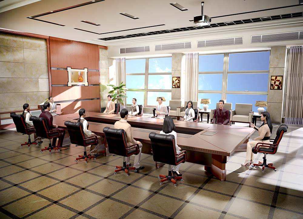 運(yùn)用3D會(huì)吧進(jìn)行會(huì)議,震撼的三維立體效果,呈現(xiàn)與會(huì)人員整體形象,構(gòu)建起與現(xiàn)實(shí)會(huì)議相似的會(huì)議場(chǎng)景,并可無(wú)紙化靈活布置會(huì)議背景墻,令會(huì)議氛圍更濃厚,并實(shí)現(xiàn)溝通效率的最大化。其在實(shí)時(shí)互動(dòng)性及交互性方面,具有得天獨(dú)厚的優(yōu)勢(shì),成為低碳、智能、高效的代言詞。