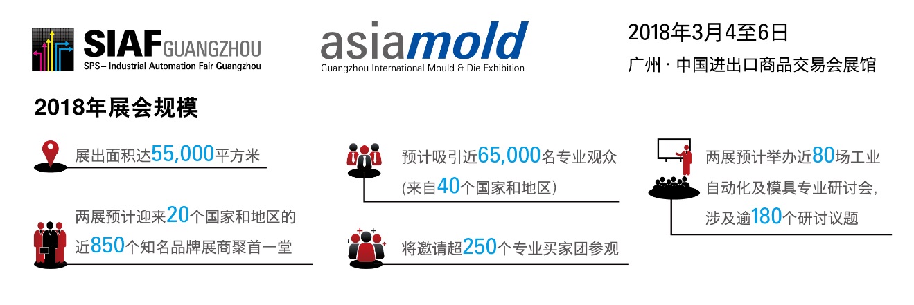 - 2018年廣州國際模具展覽會將于3月4至6日隆重登場,再度與SIAF廣州國際工業(yè)自動化技術(shù)及裝備展覽會同期舉行