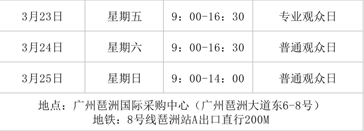 觀眾入場時(shí)間:23-24日:09:00-16:30 25日:09:00-14:00