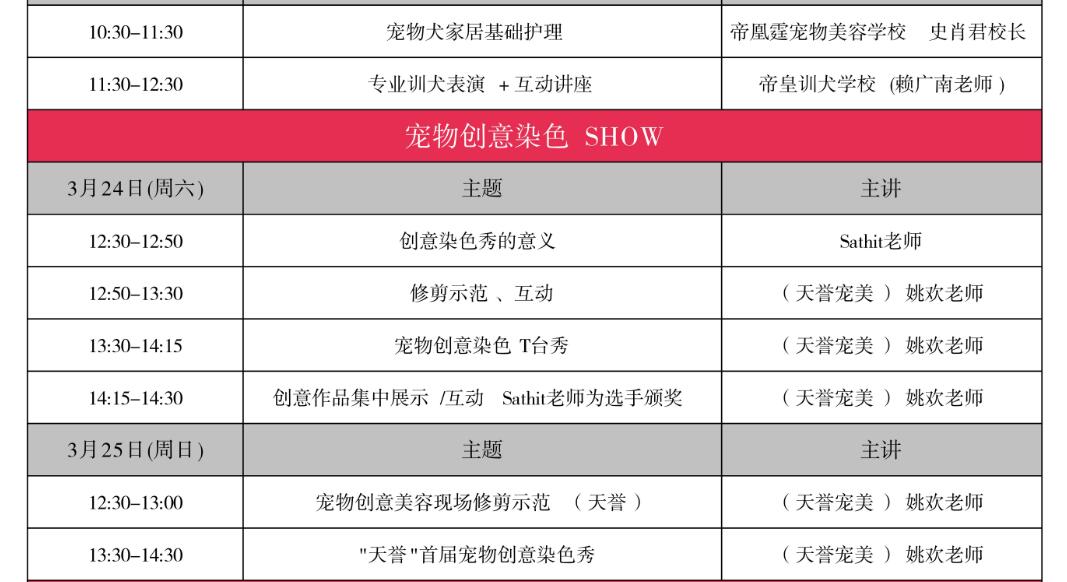 CPF國際寵博會組委會為更好的推動寵物美容流行趨勢;與天譽(yù)國際藝術(shù)寵物美容學(xué)校強(qiáng)強(qiáng)聯(lián)合,通過寵物創(chuàng)意染色走秀,向觀眾展示最流行的寵物美容時(shí)尚概念;通過此次活動,給巧手的寵物美容師們提供一個(gè)可以展現(xiàn)自己精湛才藝的舞臺;通過對寵物美容師創(chuàng)意作品的展示,吸引、儲備更多的優(yōu)秀的寵物界時(shí)尚人才;同時(shí),也使大眾更多的了解創(chuàng)意美容,使寵物創(chuàng)意美容越來越多的走近我們的生活。