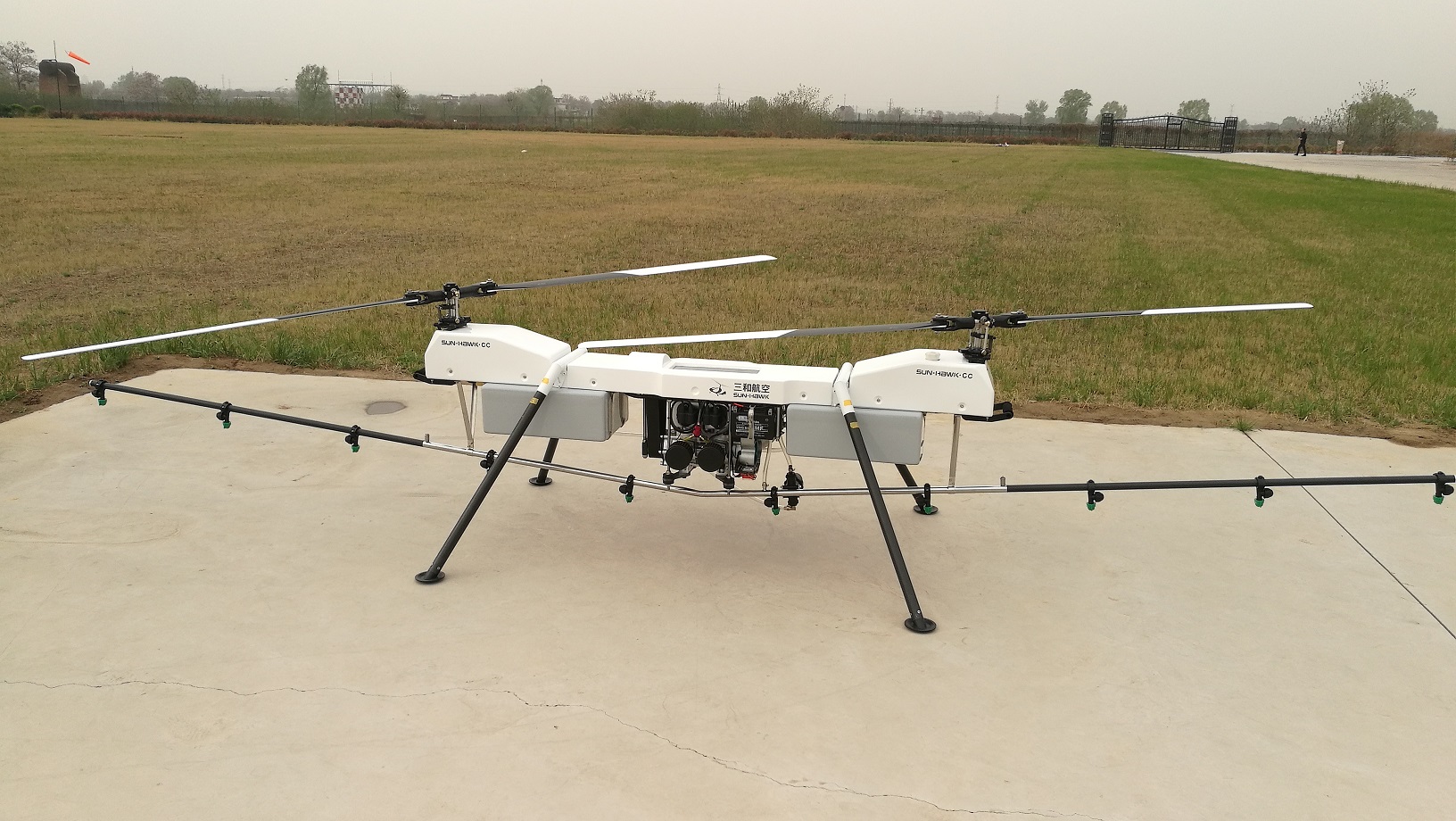 開創(chuàng)大載荷植保無人機新時代-CIAAE 2018三和航空重磅發(fā)布橫列雙旋翼植保無人機