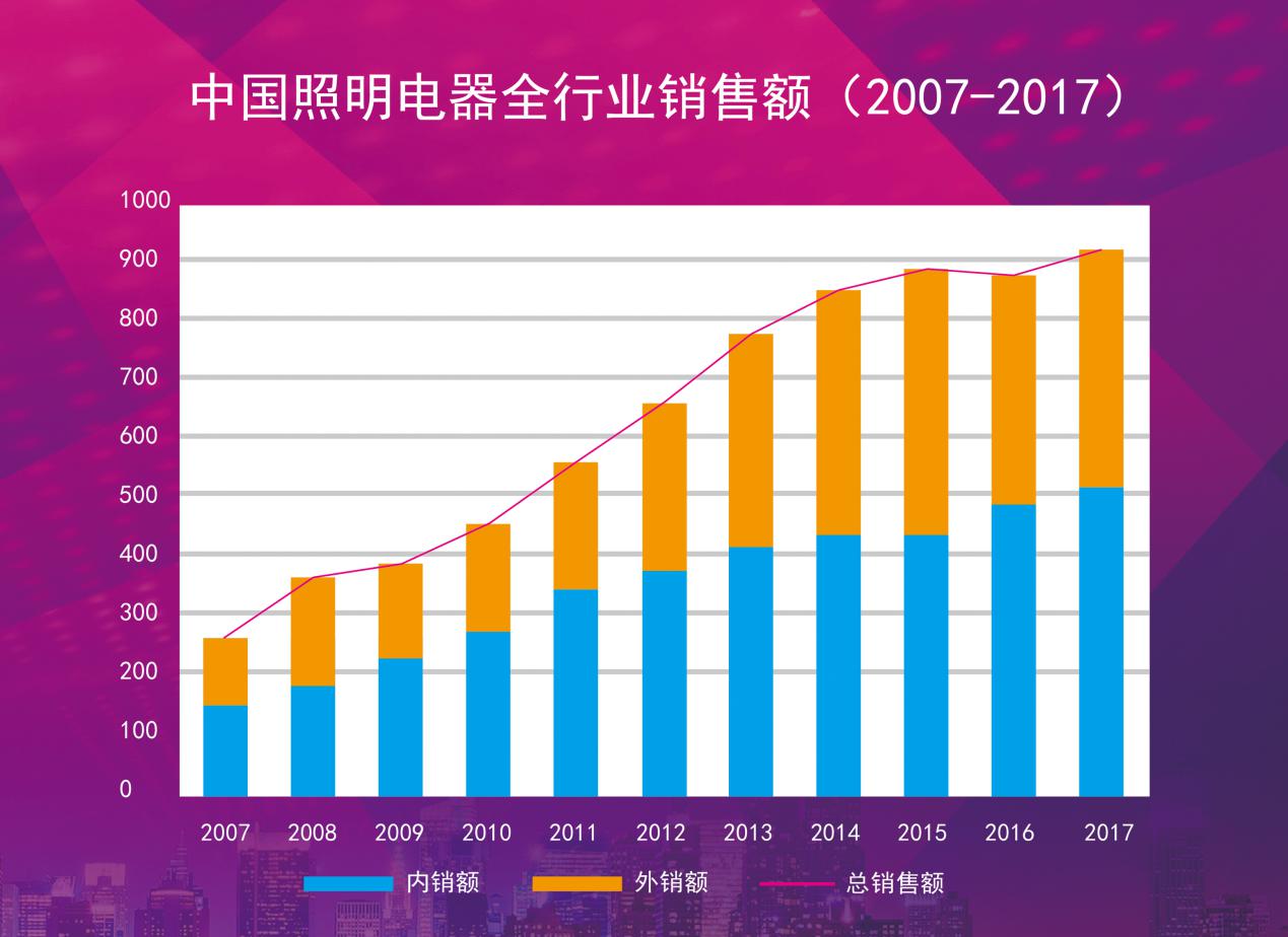 近年來(lái),我國(guó)照明行業(yè)的發(fā)展堪稱神速。以去年為例,2017年我國(guó)照明電器行業(yè)整體銷售額約為5800億人民幣,比2016年的5600億人民幣增長(zhǎng)約3.6%。外銷也從2016年的388億增長(zhǎng)至412億美元。