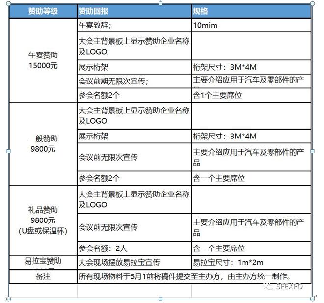 為了給部分汽車表面工程相關的供應商提供一個精準展示推廣的機會,現(xiàn)提供以下贊助方案: