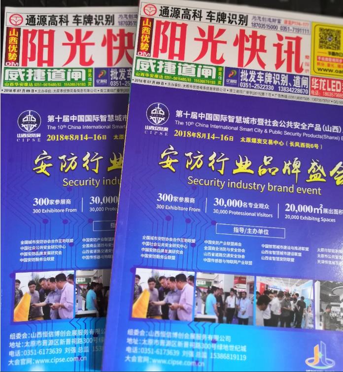 山西省發(fā)行量最大的安防行業(yè)媒體,7、8月份連續(xù)6期雜志封面廣告獨(dú)家宣傳2018第十屆山西安博會(huì)。