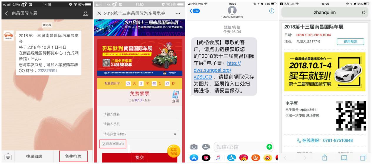 本屆南昌國(guó)際車展的免費(fèi)搶票福利也已全面上線。只需關(guān)注“南昌國(guó)際車展”微信號(hào),點(diǎn)擊下方【免費(fèi)搶票】進(jìn)入頁(yè)面提交信息即可。官方客服電話回訪核對(duì)信息后,電子門票直接發(fā)送到您的手機(jī)上,點(diǎn)開鏈接查看電子票;入場(chǎng)前可以進(jìn)入官方微信【南昌國(guó)際車展】點(diǎn)擊菜單【票證查詢】進(jìn)入查詢頁(yè)面即可打開電子票圖片;