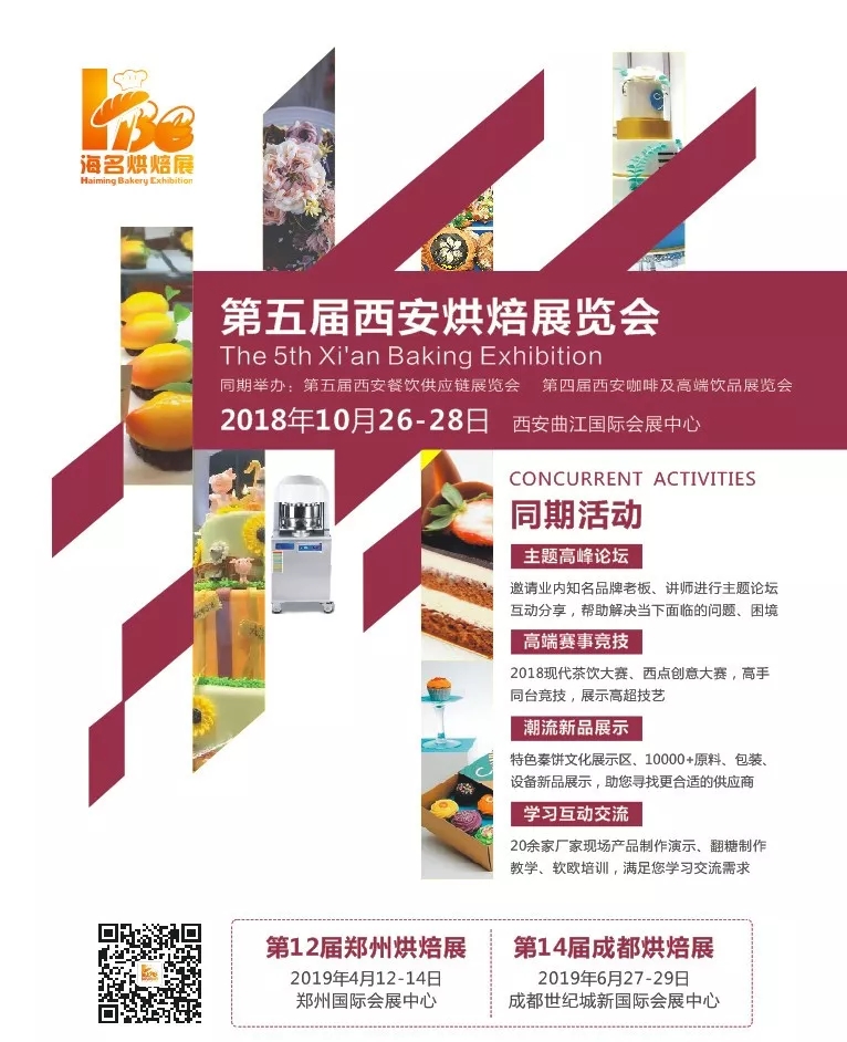 通過西安周邊地市的走訪,小編對陜西的烘焙市場有了更深入的了解,對接下來的招觀方向也更清晰了,為了這些烘焙餅店的期望和參展商的參展效果,接下來我們將繼續(xù)上路,拜訪陜西、山西、甘肅、寧夏等西北地區(qū)各地市的餅店、蛋糕店、咖啡、飲品、經(jīng)銷商等專業(yè)買家。此次西安烘焙展不僅讓觀眾看到最新的烘焙產(chǎn)品、同期還將舉行多場論壇、比賽、產(chǎn)品制作等,匯聚行業(yè)人士同臺競技;同時滿足采購需求,也更能讓廠商通過展會了解前沿一線的西北烘焙市場和發(fā)展走向。我們秉承著讓客戶做生意更便捷,讓渠道和終端采購更省時,讓廣大消費群體食用更放心的信念!歡迎行業(yè)人士2018年10月26-28日相聚西安曲江國際會展中心參觀第五屆西安烘焙展。