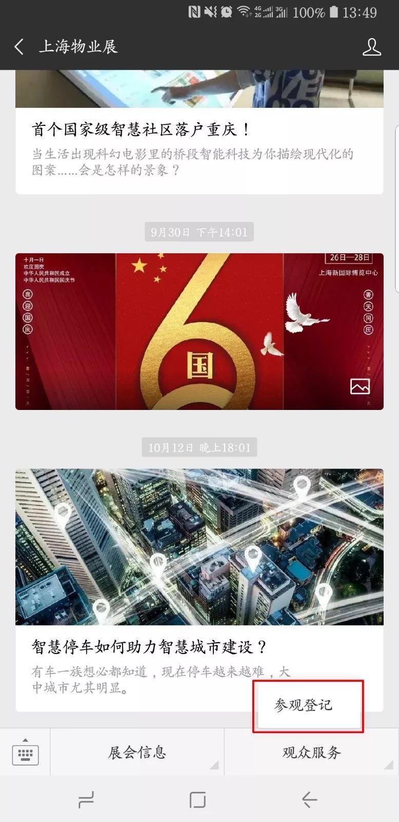 2019上海國際物業(yè)管理產(chǎn)業(yè)展覽會觀眾預(yù)登記開啟后,電腦端用戶可以登錄展會官方網(wǎng)站:www.cpmexpo.com,移動端用戶可以通過展會官方微信:上海物業(yè)展,點(diǎn)擊首頁“觀眾登記”完成觀眾注冊,不僅可免費(fèi)免排隊(duì)入場,同時(shí),到場更有好禮相送!