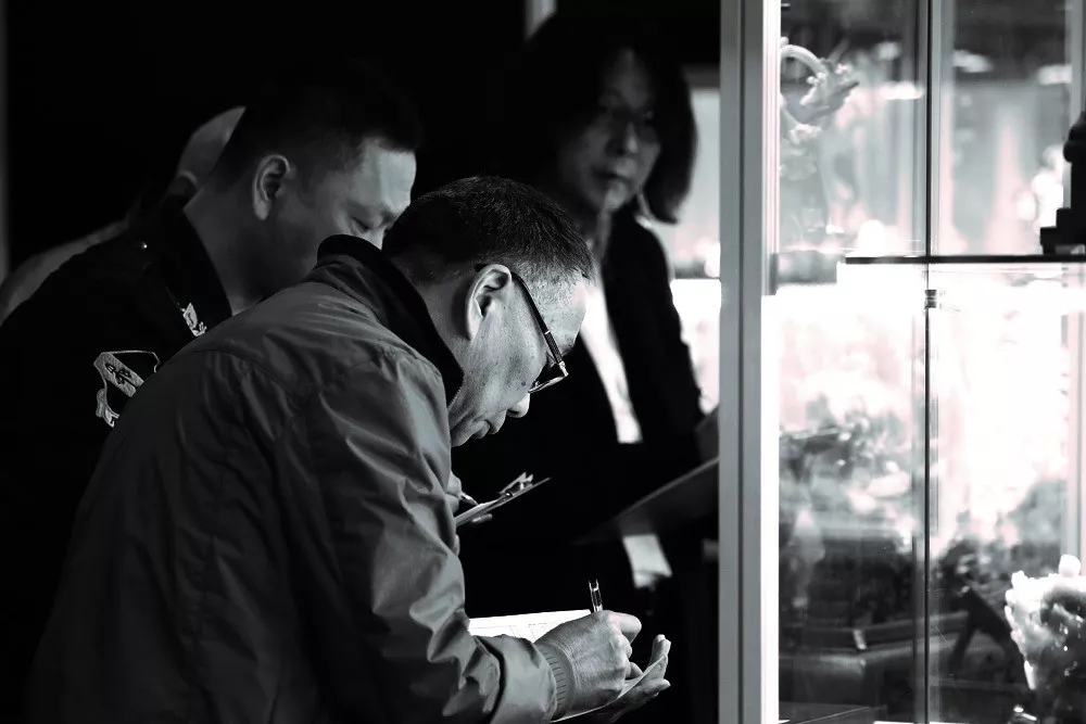 伴隨著珠寶展的盛大開幕,天工獎也迎來年復(fù)一年的人流高潮。每一年天工獎?wù)箙^(qū)都會吸引大量觀眾駐足觀賞,拍照聲贊嘆聲不絕于耳。近年更是出現(xiàn)了很多網(wǎng)絡(luò)直播,使得更多不能親臨現(xiàn)場的觀眾即時看到展區(qū)的盛狀。