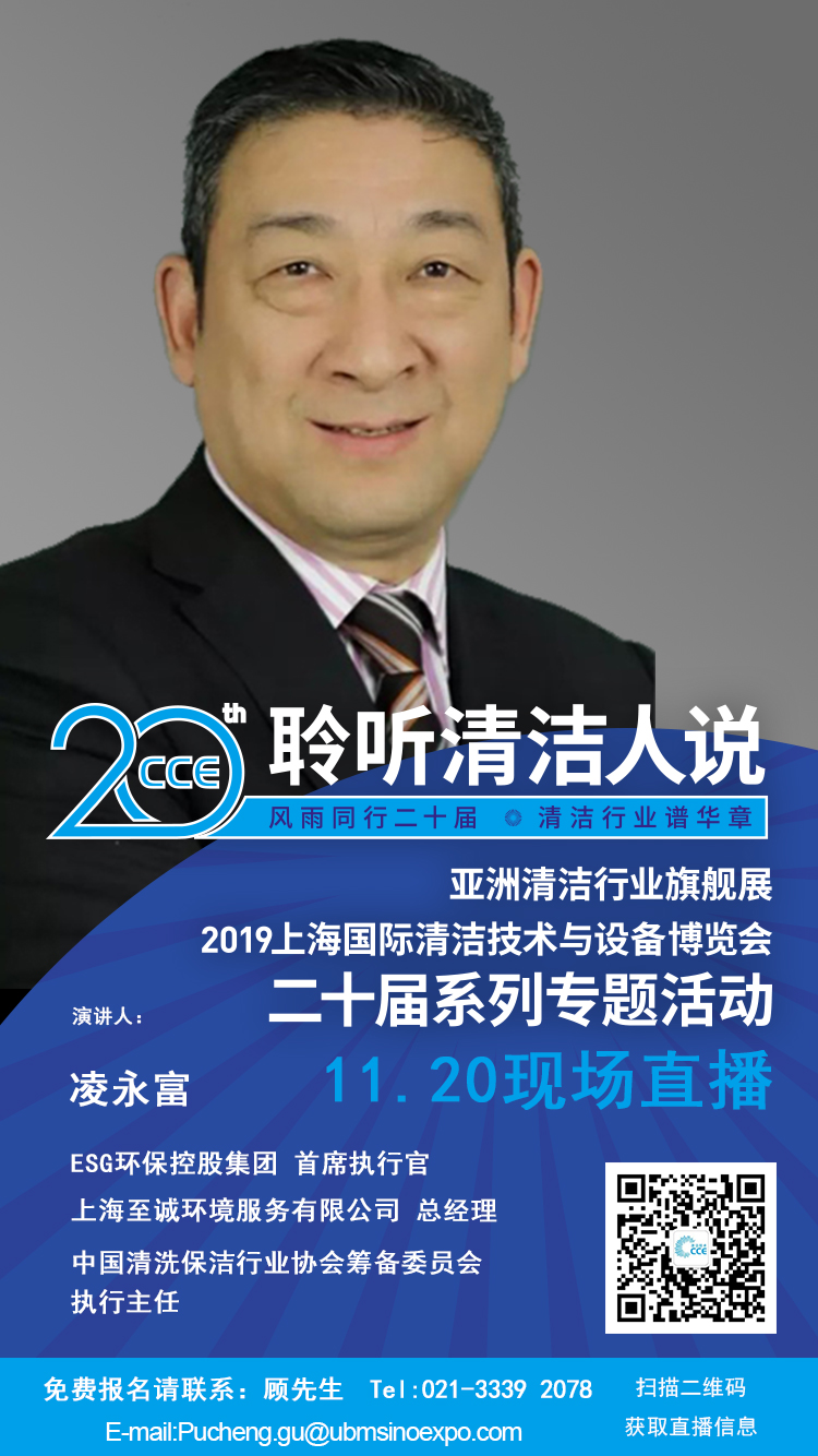 11月20日,“清潔人說”直播間即將迎來第一位嘉賓:凌永富先生。作為ESG環(huán)保控股集團(tuán)首席執(zhí)行官、上海至誠環(huán)境服務(wù)有限公司總經(jīng)理、中國(guó)清洗保潔行業(yè)協(xié)會(huì)籌備委員會(huì)執(zhí)行主任,凌總深耕行業(yè)40余年,見證行業(yè)不斷變化,率領(lǐng)企業(yè)與協(xié)會(huì)取得飛躍式的進(jìn)步。