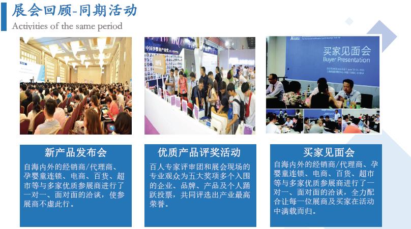 為提升企業(yè)的品牌知名度和美譽(yù)度,彰顯卓越的產(chǎn)品品質(zhì)和服務(wù),展會(huì)開(kāi)展期間將舉行產(chǎn)品評(píng)獎(jiǎng)活動(dòng),大會(huì)獎(jiǎng)項(xiàng)設(shè)置“金獎(jiǎng)”;“推薦新產(chǎn)品”獎(jiǎng);“優(yōu)質(zhì)產(chǎn)品、最佳產(chǎn)品”獎(jiǎng);(相關(guān)參評(píng)條件請(qǐng)向組委會(huì)索取)。展會(huì)期間將邀政府機(jī)構(gòu)、國(guó)家級(jí)媒體及行業(yè)媒體、業(yè)內(nèi)專(zhuān)家、舉辦千人大會(huì)及多場(chǎng)專(zhuān)題論壇,會(huì)議與展會(huì)相互輝映,品牌企業(yè)的必選!母嬰連鎖與電商智變專(zhuān)題論壇,母嬰零售門(mén)店升級(jí)發(fā)展新途徑母嬰服務(wù)品牌升級(jí)發(fā)展論壇,月子會(huì)所與產(chǎn)后修復(fù)發(fā)展論壇,嬰兒游泳與親子攝影論壇、資助貧困兒童大型義賣(mài)公益活動(dòng)、公益大講堂等等。使眾多參會(huì)人員在參觀展會(huì)的同時(shí),享受學(xué)習(xí)、交流的饕餮盛宴,得到了參展企業(yè)的一致好評(píng)。