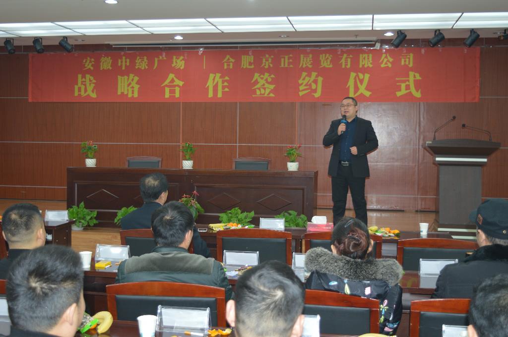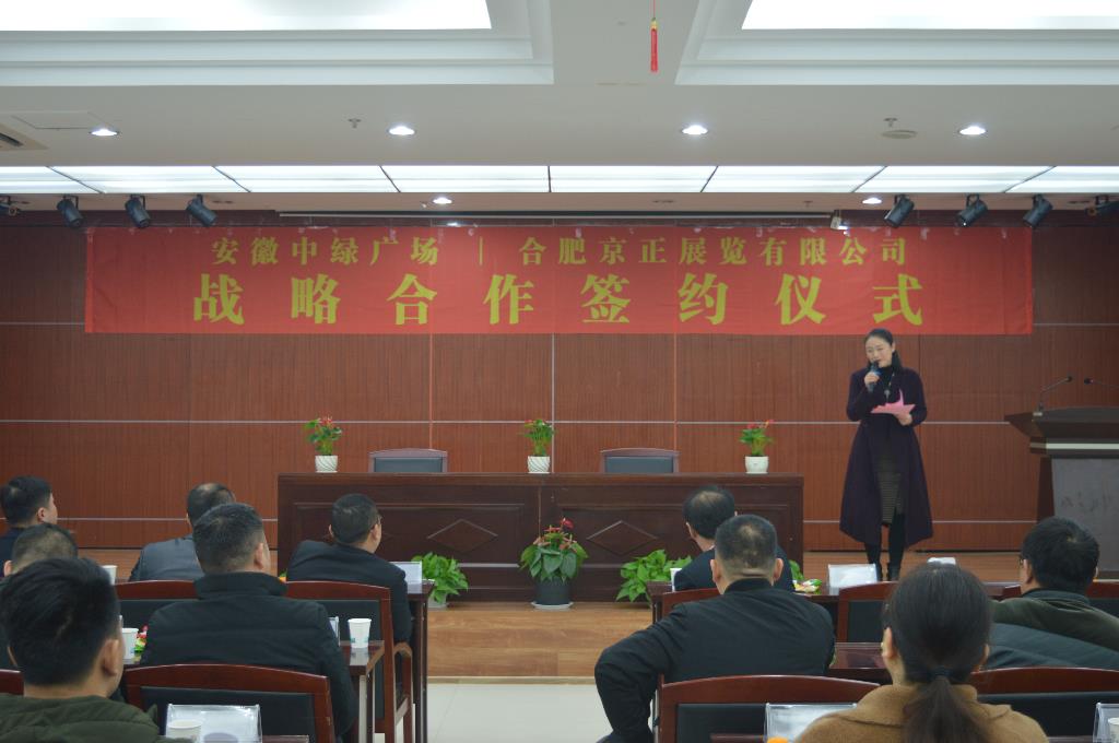 2018年12月6日10:00,在安徽中綠廣場(chǎng)寫字樓26樓會(huì)議廳,安徽中綠廣場(chǎng)與合肥京正展覽有限公司戰(zhàn)略合作簽約儀式隆重開場(chǎng)。