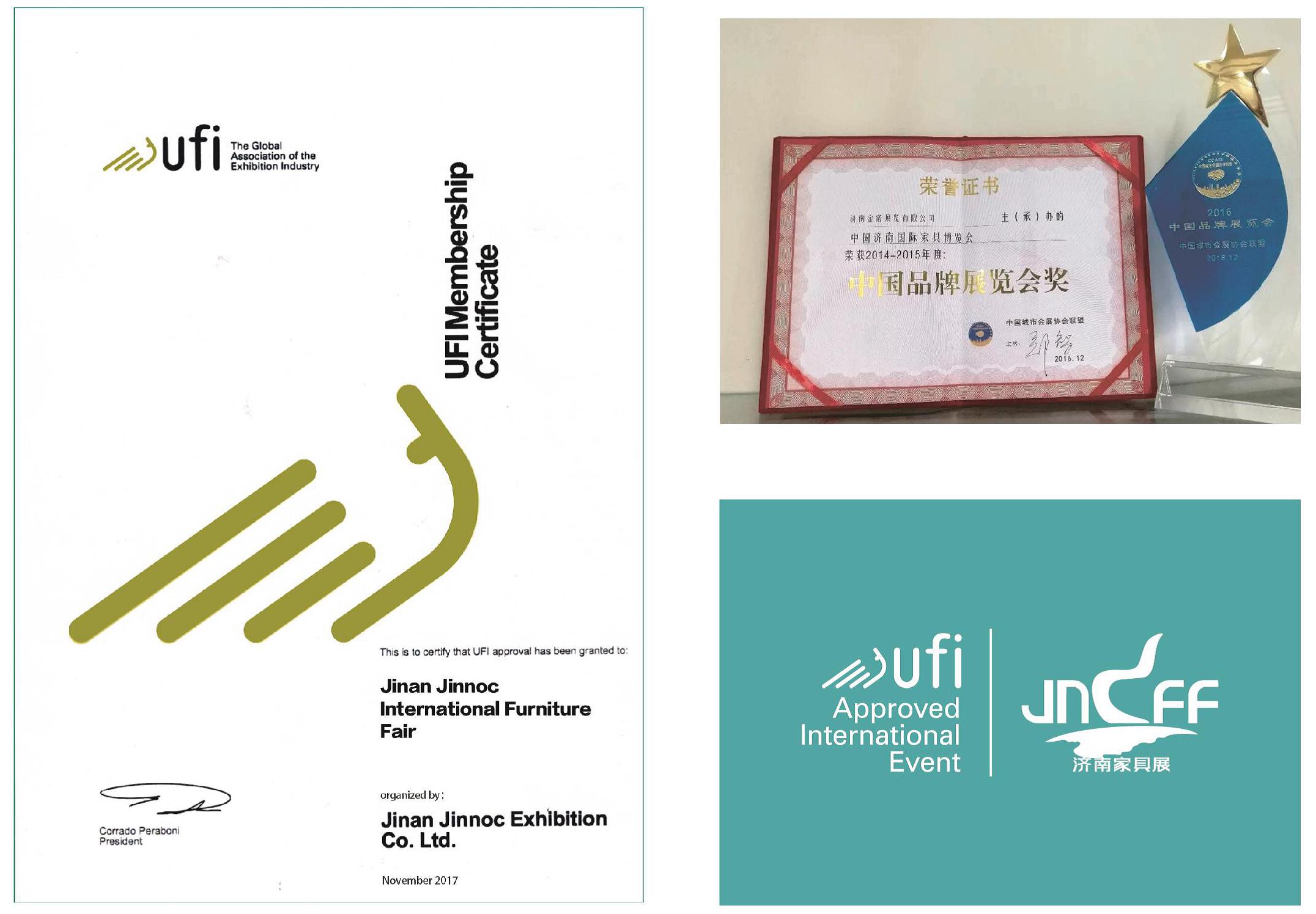 “濟(jì)南國際家具博覽會(huì)”于2016年在中國(重慶)城市會(huì)展業(yè)合作發(fā)展論壇暨2016中國城市會(huì)展協(xié)會(huì)聯(lián)盟峰會(huì)上榮膺“2016中國品牌展覽會(huì)”殊榮。2017年11月1日,在第84屆國際展覽業(yè)協(xié)會(huì)年會(huì)上通過了全球國際展覽業(yè)協(xié)會(huì)執(zhí)行委員會(huì)的審核,成為了UFI的正式會(huì)員,“濟(jì)南國際家具博覽會(huì)”被授予 “UFI認(rèn)證的國際展覽會(huì)”。 “濟(jì)南國際家具博覽會(huì)”獲得UFI認(rèn)證在展會(huì)發(fā)展歷程上具有里程碑意義,這是山東省內(nèi)第一個(gè)獲得UFI認(rèn)證的家具類專業(yè)展會(huì)。