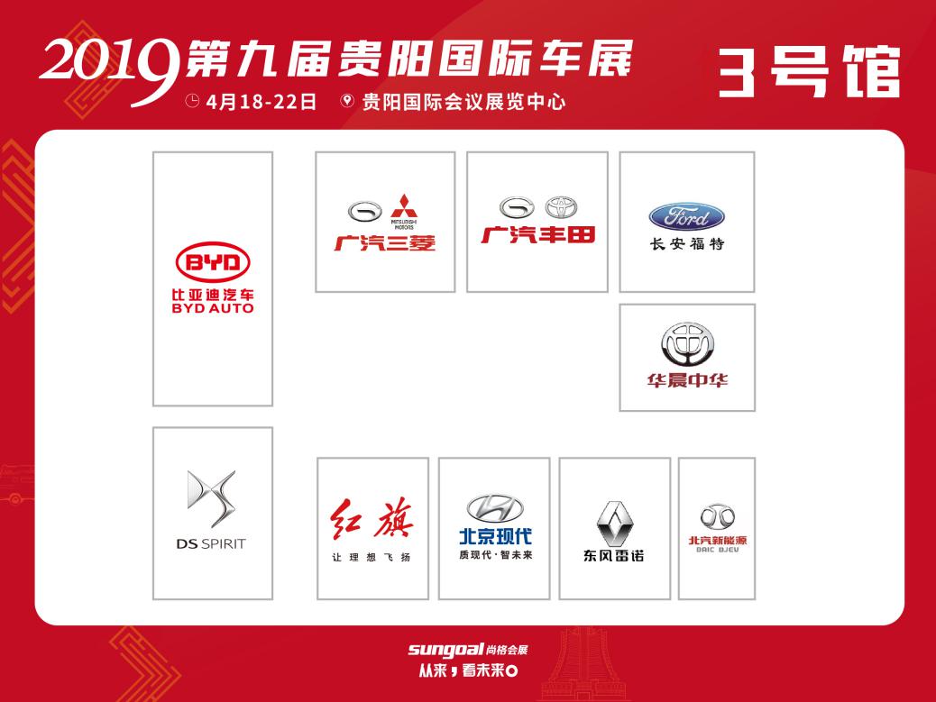 3號(hào)館(按順時(shí)針方向):比亞迪汽車、廣汽三菱、廣汽豐田、長(zhǎng)安福特、華晨中華、北汽新能源、東風(fēng)雷洛、北京現(xiàn)代、紅旗、DS