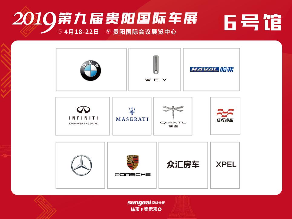 6號(hào)館(按順時(shí)針方向):寶馬、WEY、哈佛、慶紅汽車、前途汽車、瑪莎拉蒂、英菲尼迪、眾匯房車、保時(shí)捷、奔馳