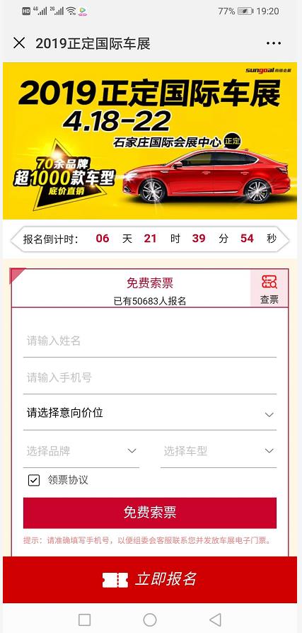 關注“正定國際車展”微信公眾號,點擊“免費索票”選擇“票證查詢”,輸入相關信息,即可查票。