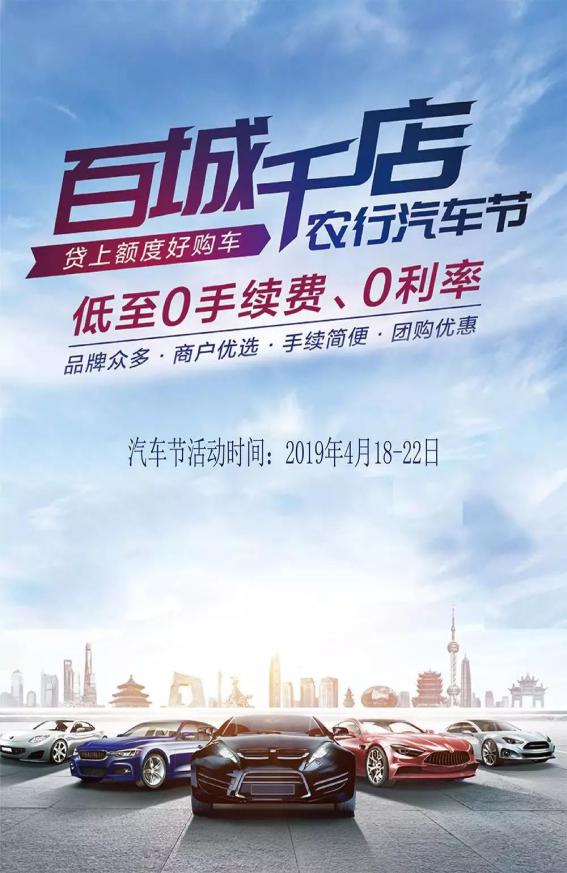 農(nóng)業(yè)銀行:百城千店農(nóng)行購車節(jié),低至0手續(xù)費、0利率