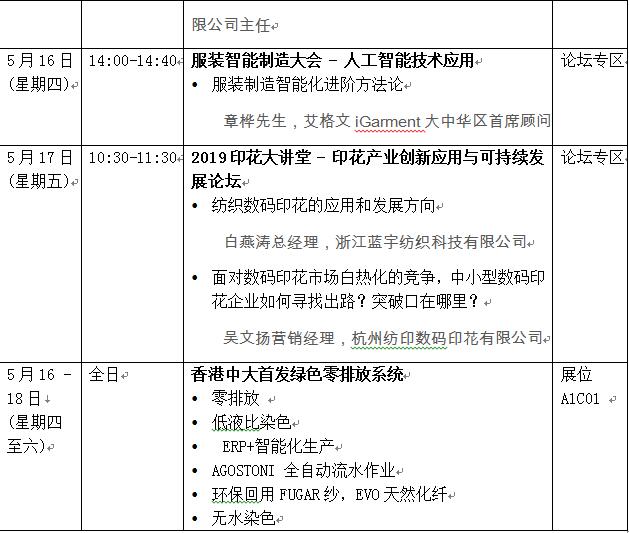 「浙江紡博會(huì)2019」同期活動(dòng)時(shí)間表: