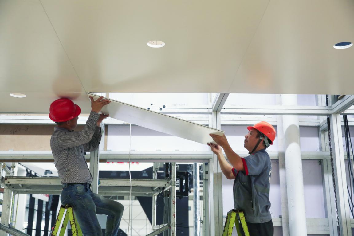 布展期間,展館內(nèi)會出現(xiàn)一波忙碌的身影,他們頭戴安全帽,或手扛重物,或熟練地爬上爬下,他們正是展臺的搭建工人。嘴角上揚(yáng)的弧度,是對并肩作戰(zhàn)小伙伴的贊美和鼓勵(lì)。一磚一瓦、一絲不茍,只為車展提供更好的參展環(huán)境。