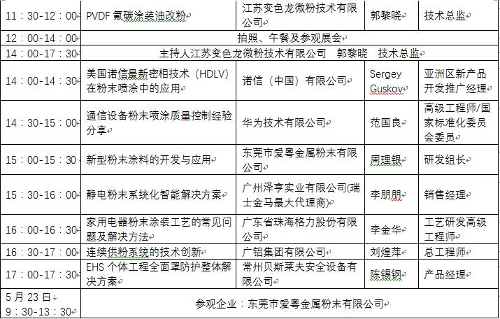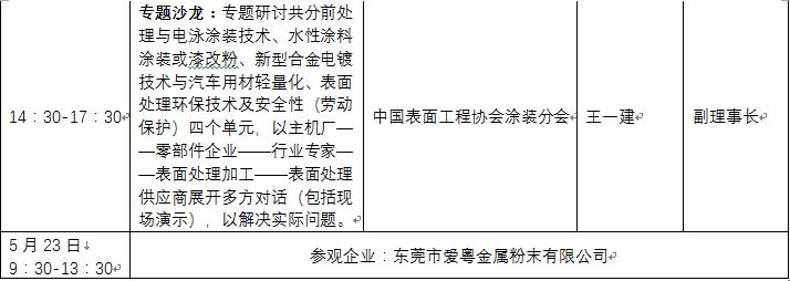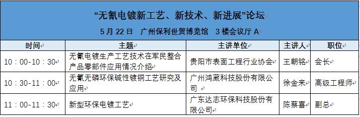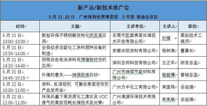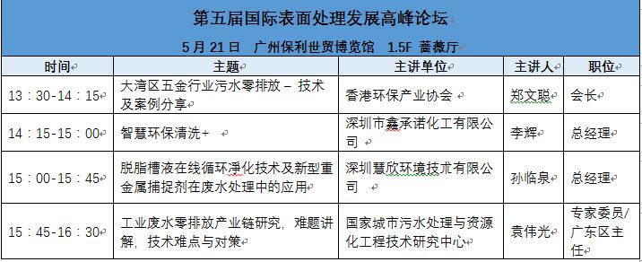會(huì)議與展覽會(huì)深度相結(jié)合歷來是廣州國際表面處理展覽會(huì)的一大特色,本屆展會(huì)將有70場次國際性論壇、行業(yè)會(huì)議、技術(shù)研討會(huì)在同期舉辦,最新最前沿技術(shù)助力用戶企業(yè)最大限度地創(chuàng)造產(chǎn)品價(jià)值。部分會(huì)議及議程如下: