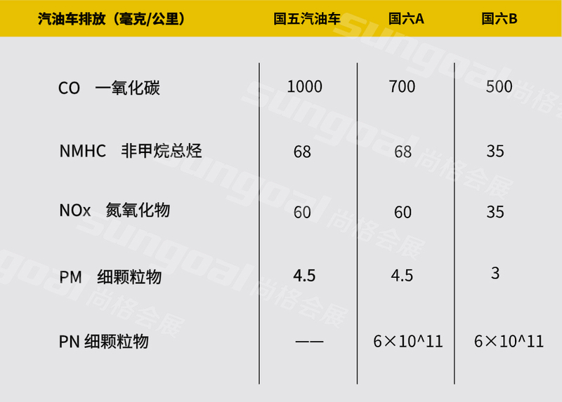 左側(cè)那一條排放物,不是化學(xué)系畢業(yè)的同學(xué)多半看不懂。沒關(guān)系,我們都是會(huì)阿拉伯語(yǔ)的人,數(shù)值上,從左往右逐漸減小的趨勢(shì),大家都一清二楚。稍微計(jì)算一下,我們更不難發(fā)現(xiàn),國(guó)六b的數(shù)值,幾乎就是國(guó)五的對(duì)折啊。